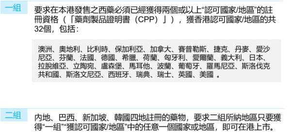本港现时并无医药监督管理机构,海外新药入港需根据香港药剂业及毒药管理局《新药剂或生物元素药剂制品注册申请指南》(下称“申请指南”)引述之要求,取得国际上权威的两家或以上的监管机构的药证后,才可入港接受香港卫生署第二层审查,获批后方可在港上市。