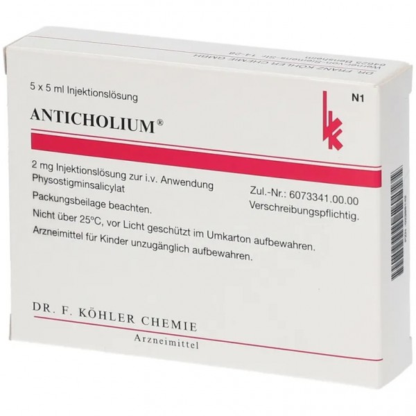 Physostigmine Salicylate Injection 水楊酸毒扁豆素注射劑 2mg/5ml/amp 保存條件 貯存 15℃-25℃ 主要作用 Physostigmine 以治療抗乙醯膽鹼症候(anticholinergic poisoning)為主。 病人臨床表徵 1. 主要有口乾,顏面潮紅,瞳孔放大,心博過速,心律不整,尿滯留,腸胃蠕動減少,進而意識混亂,不安躁動,譫妄, 幻想,全身抽搐,昏迷。 2. 中毒症狀在0.5-3小時出現,多數在24至48小時消失。 可能中毒來源 藥物方面包括 1. 抗組織胺藥類antihistamines。 2. 抗精神病藥物類antipsychotics、antispasmodies。 3. 部分的抗巴金森症藥物anti-parkinsonism medications。 4. 三環抗鬱劑antidepressants。 5. 含抗組織胺的助眠成藥 OTC sleep preparations等。 植物方面包括 1. 大花曼陀羅 2. 紅花曼陀羅 3. 曼陀羅花 4. 紫花曼陀羅 (有些中毒是病人誤為可食野菜或野花,有些中毒是病人買自中草藥店用來治療氣喘或保健)。 監測診斷 必須與安非他命,古柯鹼及其他原因引起之交感神經症狀作區別。 適應症 1. 病人有全身抽搐(seizure)。 2. 嚴重的躁動不安。 3. 昏迷伴隨呼吸衰竭。 4. 低血壓伴隨心律不整等症狀時。 注意:三環抗鬱劑中毒則避免使用。 劑量及用法 1. 成人緩慢靜脈注射1-2毫克,達5-10分鐘。 2. 小孩緩慢靜脈注射0.5毫克(0.02 mg/kg),間隔5分鐘後可重複給藥,最高劑量為2毫克,30-60分鐘可再給藥。 注意事項 1.氣喘、支氣管攣縮、週邊血管疾病、腸道或膀胱阻塞、心臟傳導缺陷、心室阻斷之病人等,尤需小心。 2. 不可注射過快。